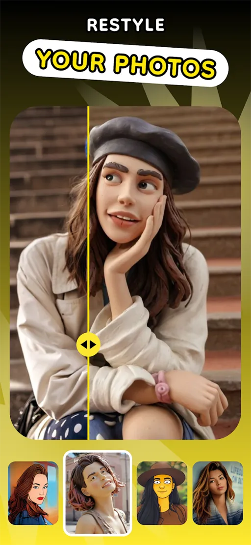 تتميز الواجهة الرئيسية لتطبيق ToonMe Cartoon Photo Editor بتصميم بسيط ومنظم يسهل التعامل معه حتى للمستخدمين الجدد. في الجزء العلوي ستجد شريط الأدوات الذي يحتوي على خيارات التراجع والإعادة والحفظ والمشاركة، وكلها مرتبة بأيقونات واضحة تسهّل الوصول إليها بسرعة. في الأسفل يوجد شريط مخصص لعرض الأساليب والفلاتر المختلفة مع صور معاينة توضح شكل كل نمط قبل تطبيقه، مما يساعدك على اختيار الأسلوب المناسب دون تجربة عشوائية. يتوسط الشاشة لوح العمل الكبير الذي يعرض الصورة بشكل واضح مع إمكانية المقارنة بين قبل وبعد عبر تمرير بسيط بالإصبع. التصميم أنيق ومتناسق والألوان مريحة للعين، مما يجعل تجربة الاستخدام سلسة وممتعة منذ اللحظة الأولى.